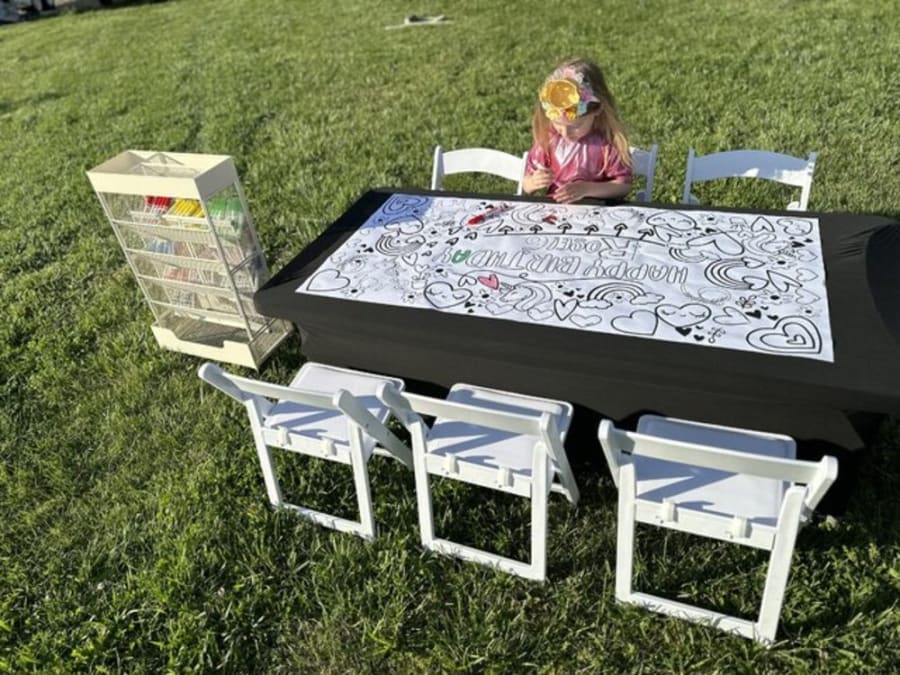 Need something to add to your next party! Adults love to be creative too!Custom Coloring Tablecloth with Birthday person's name and age, Baby Shower, Bachelorette or whatever custom item you can think of! After checking out, please contact us by email so that we can start creating your custom tablecloth. Each rental includes 2 copies of your tablecloth, table with 6 chairs. We provide crayons and washable markers as well!